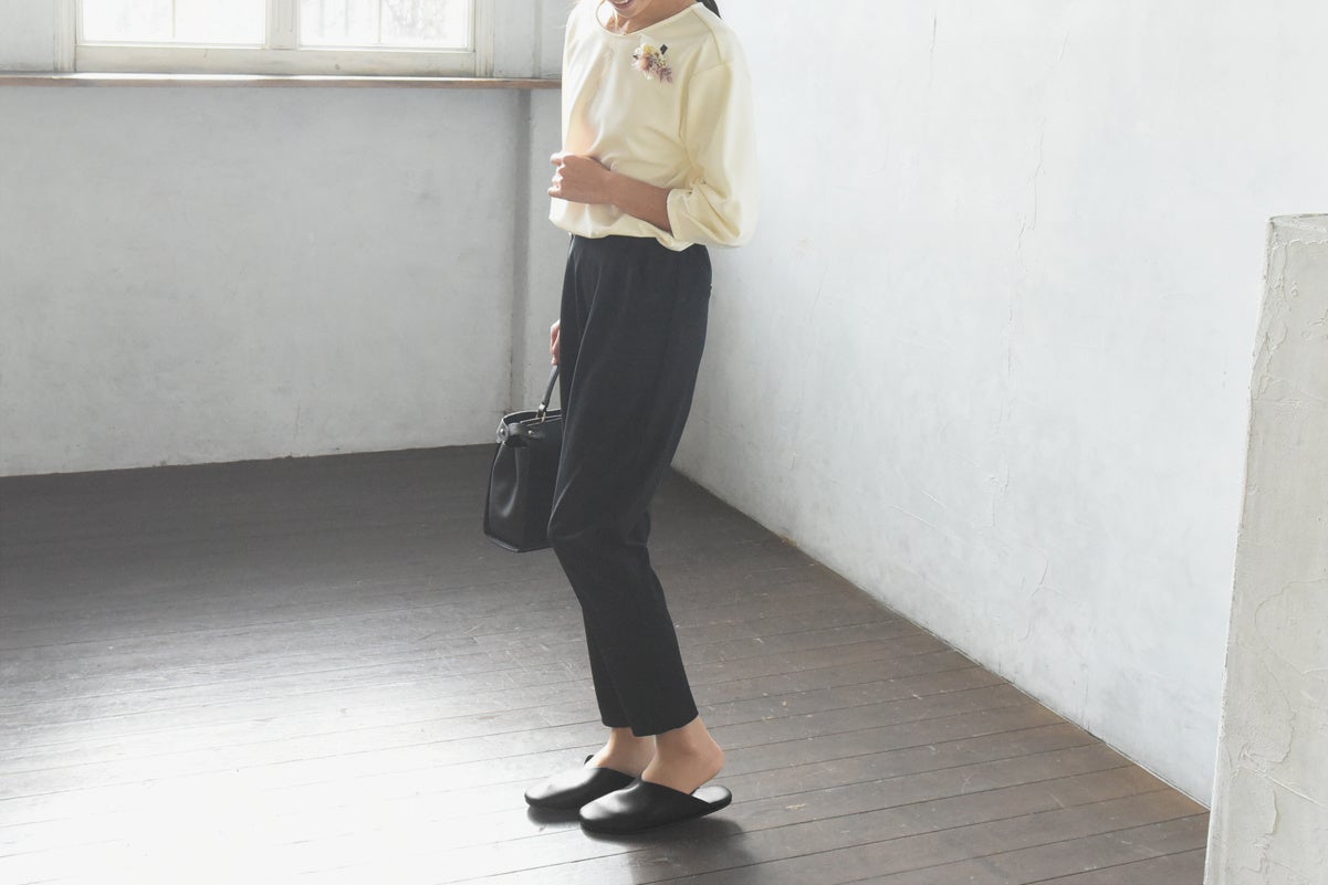 女性用の携帯シューズと言えばバレエシューズタイプが主流ですが、 bon moment(ボンモマン)から新発売となったこちらはスリッパタイプ。