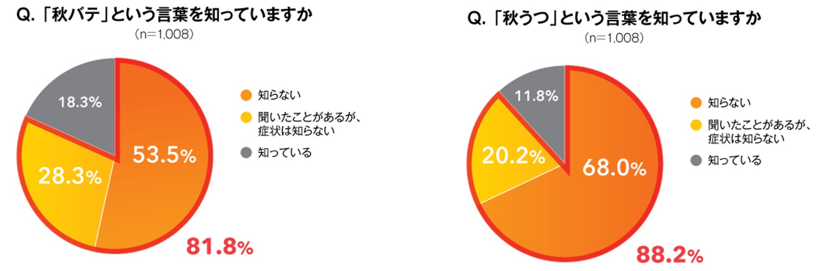 ・「秋バテ」の認知率(症状まで理解している)は18.3%にとどまり、「秋うつ」の認知率は11.8%のみにとどまりました。