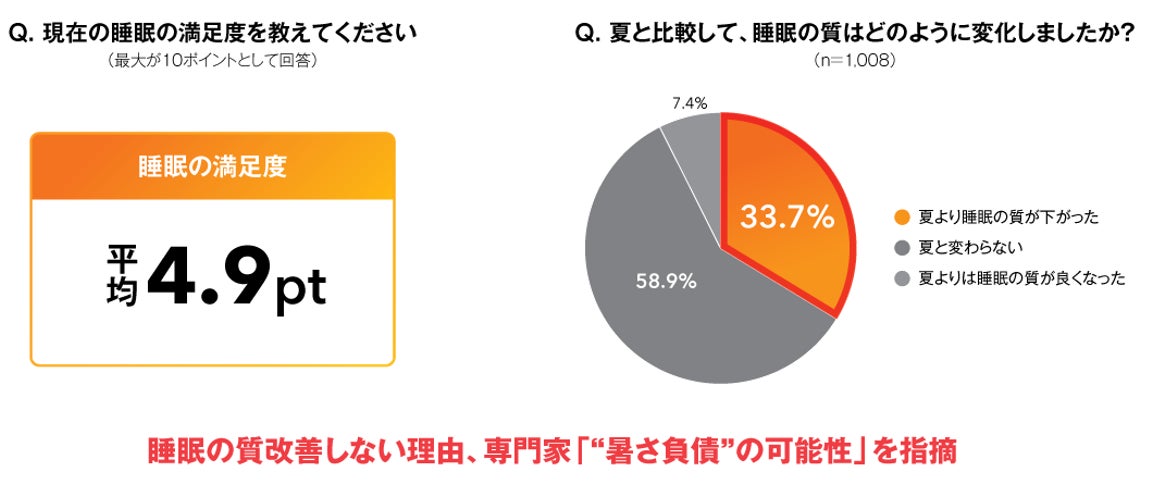 ■9月中旬、約6割が睡眠の質は「夏と変わらない」、3人に1人は「夏よりも睡眠の質が下がった」と回答。この要因について、専門家は”暑さ負債”の可能性を指摘