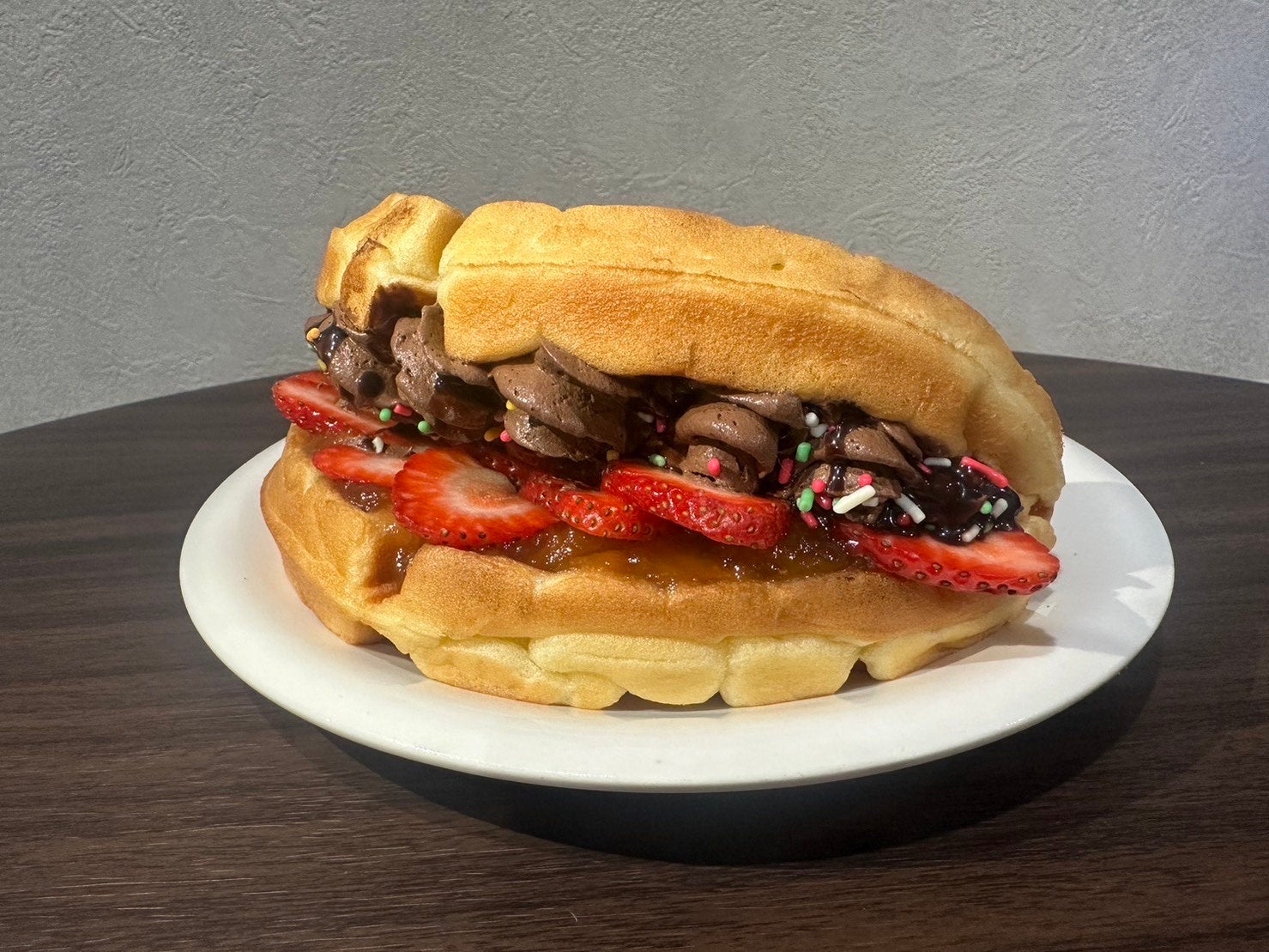 スイーツ系以外にもチーズやハムを挟んだおかずメニューも生地が甘いので相性抜群です!