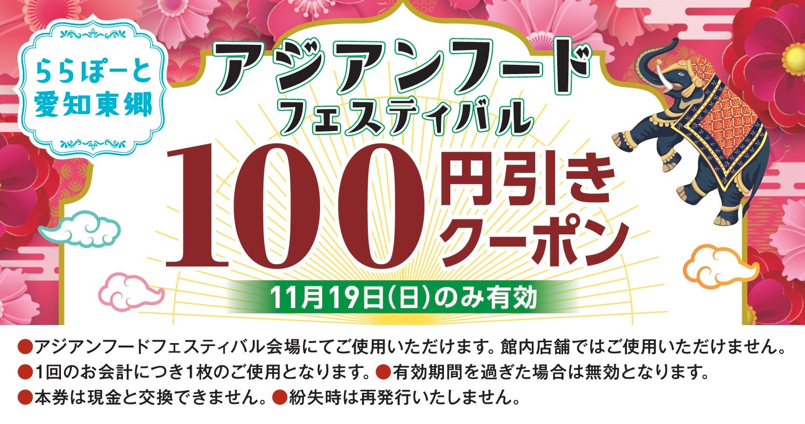 この機会に、是非ららぽーと愛知東郷へご来館いただき、あなたのお気に入りアジアンフードを探してみてください。