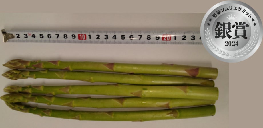 「さぬきのめざめ」の特徴はスジがあまり残りにくく柔らかい、そしてさわやかな甘みがあります。また、穂先が開きにくく、硬くなりにくい特性を生かして50センチ/100gでの収穫も可能です。BBQなどでお出しすると大変驚かれると思います。