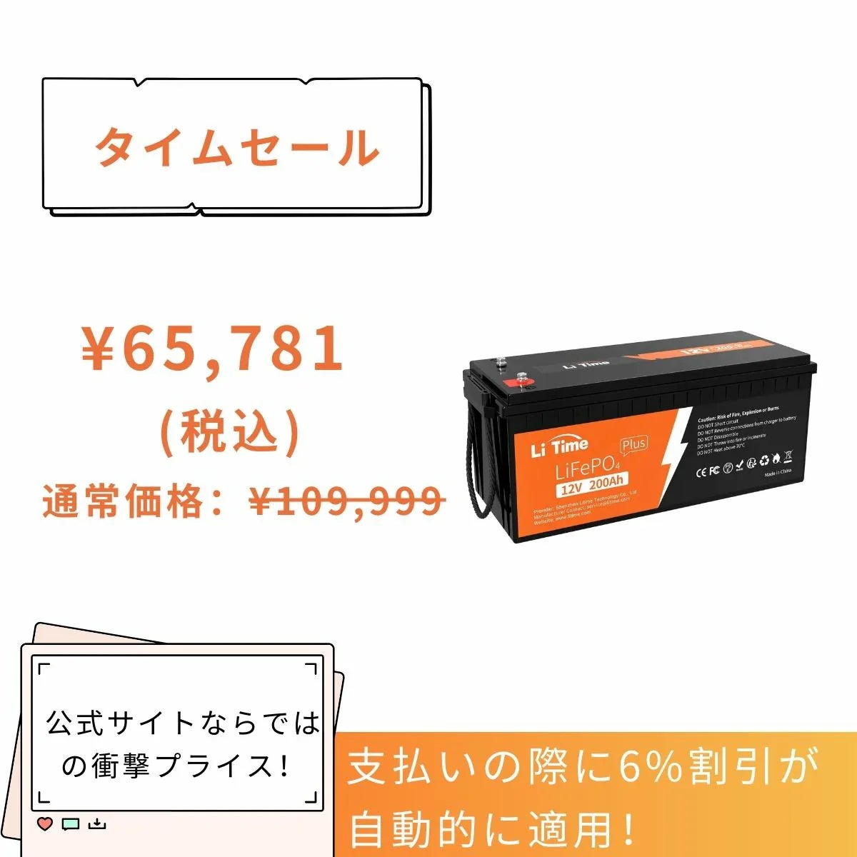 大容量・高性能のリン酸鉄リチウムイオンバッテリーを、今だけのお得な価格で手に入れるチャンスです。