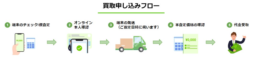 本サービスでは、端末の仮査定から本人確認、発送、入金までオンライン上で手続きを完結させることができるため、最小限の手間で簡単にご利用いただけます。