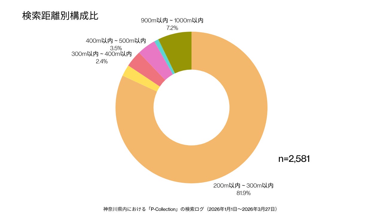 パーキングサイエンス株式会社(本社:神奈川県藤沢市、代表取締役:井上直也)は、自社が運営する【無料】ポイ活機能付き駐車場検索アプリ「P-Collection」における神奈川県内の検索データ(対象期間:2026年1月1日~2026年3月27日/2,581件)を分析し、ユーザーの駐車場選択に関する最新トレンドを発表しました。