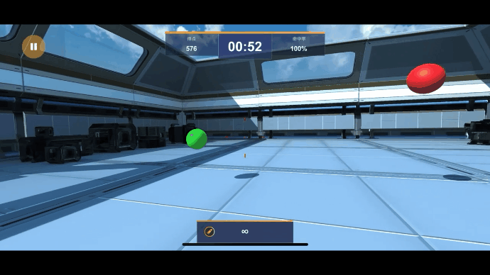 スマートフォンの画面が銃の動きとリンクして画面が移動し、ターゲットを撃ち抜きます。