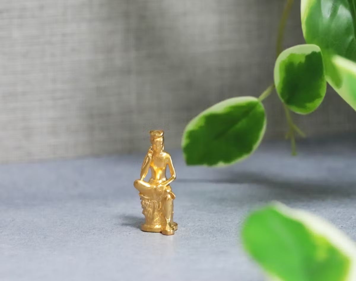 黄金に輝く世界三大微笑!“念持仏”として、お財布に入れられるお守りサイズの【純金の弥勒菩薩像】の誕生です。