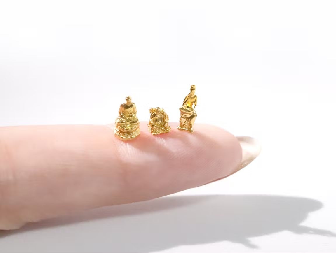純金製で極小サイズの弥勒菩薩。細部まで再現した完成度の高い仕上がりで、微笑みの表情までしっかり表現しました。生前に購入した仏具は、相続税が非課税になるという話も…