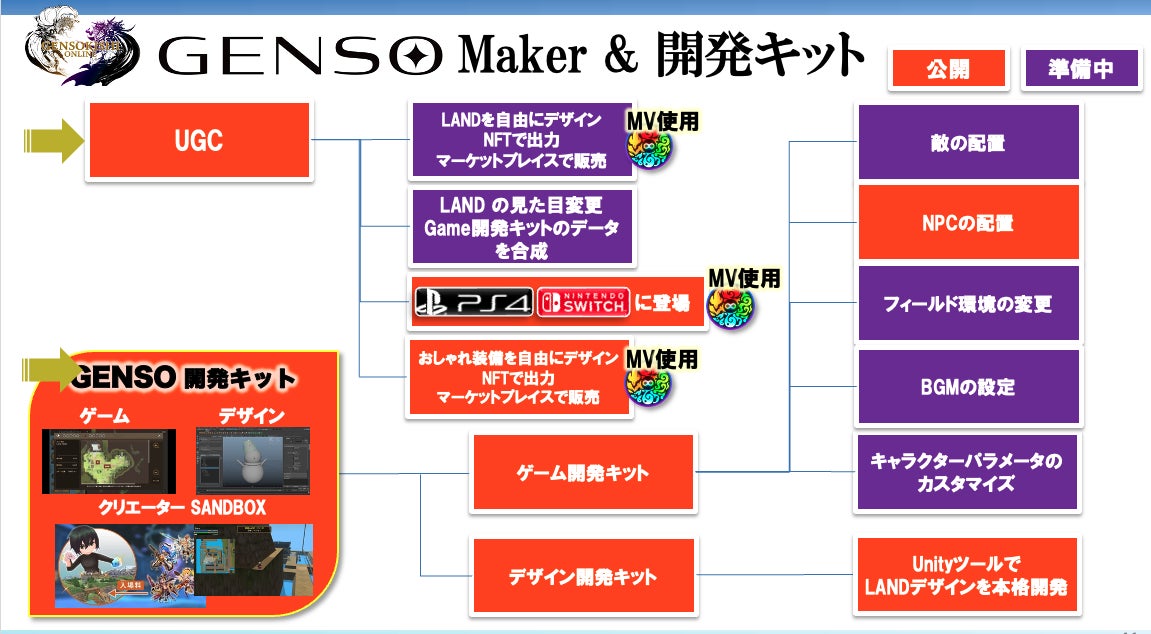 *UGC装備…元素騎士オンラインでは、ユーザー自身が作成した装備品の3Dモデルを、GENSO MAKERというツールを用いてNFT化し、ゲーム内にインポートして装備して遊ぶことができます。このユーザーが自由にデザイン、作成した装備のことを、『UGC装備』と呼んでいます。