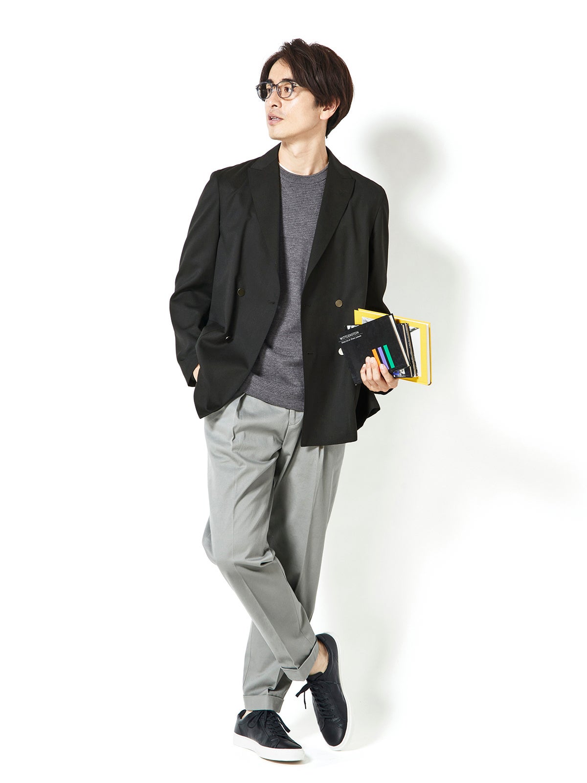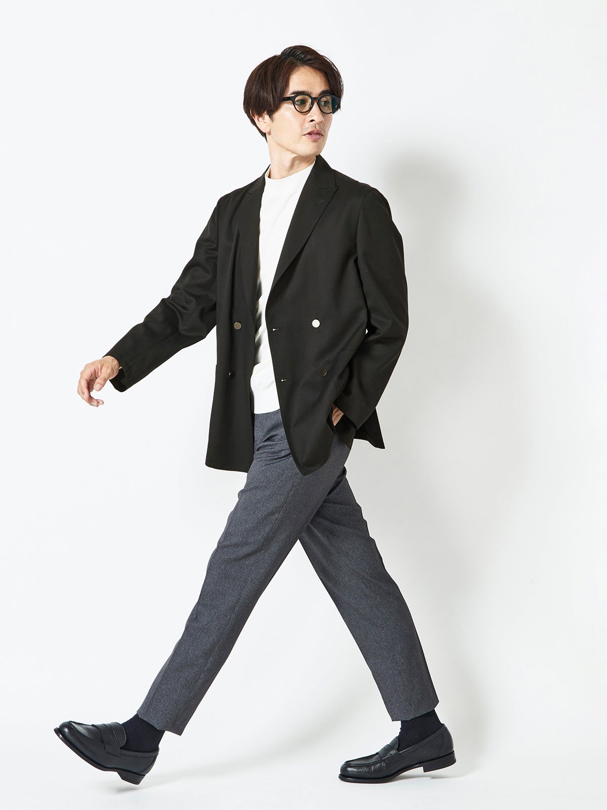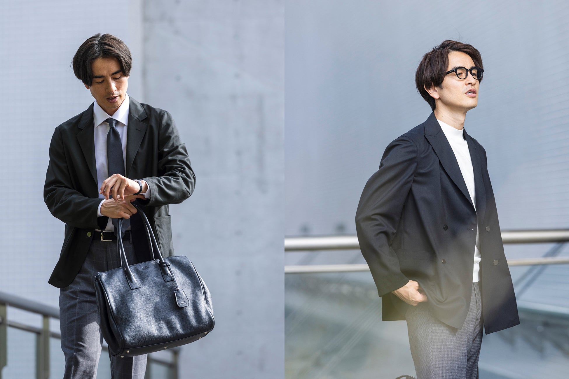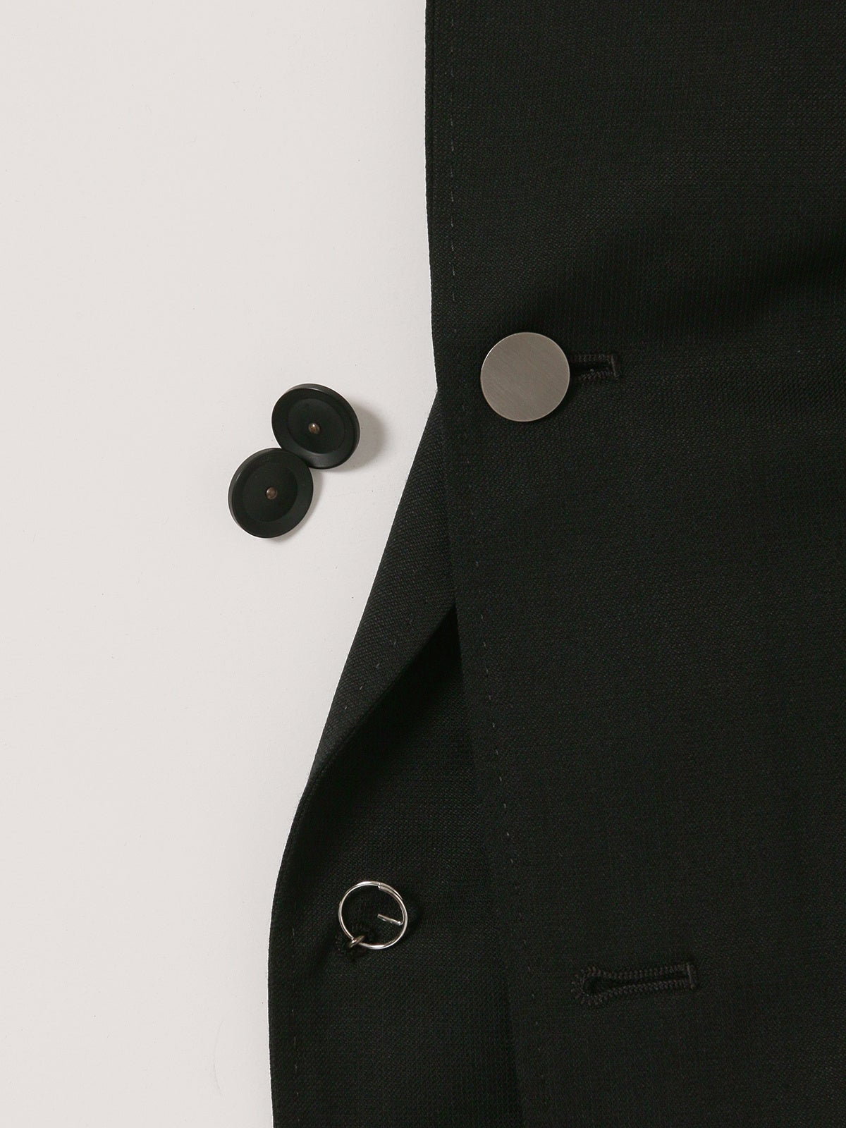 また、ボタンはメタルボタンに加えて落ち着いた印象のポリエステルボタンを用意しました。裏ボタンを外すことで、その日のコーディネートによって気軽にボタンの付け替えが可能です。カラーは、定番のネイビーではなく、注目度が上がってきているモードなブラックを採用する他、シングルとダブルブレストの2型を展開し、ビジネスシーンでもプライベートでも使い回しがしやすいマルチなジャケットに仕上がっています。