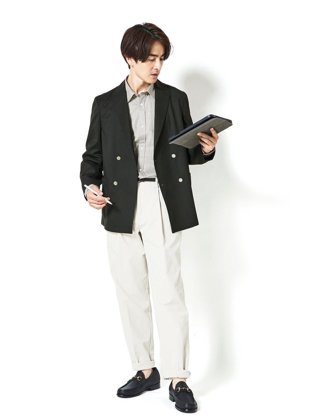 昨今、夏場のオフィスウェアではカジュアルな装いも定着し始めたこともあり、Tシャツやポロシャツなど様々なウェアリングを取り入れるビジネスパーソンが増えてきています。今回は、朝晩と日中の気温差のある季節の変わり目にもコーディネートしやすく、夏場の軽装でも着用するだけできちんと感が演出できる「シャツジャケット」を企画しました。見た目は、通常のジャケットと変わらない仕様でありながらも、裏地などの副資材は全て省き、カーディガン感覚で羽織ることができます。さらに、タイドアップやカジュアルスタイルなど様々なスタイルとの相性を考え、シンプルでトレンド感のある少し緩めなシルエットにしています。