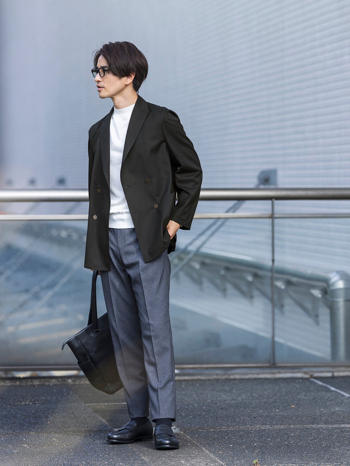 今回のような、非常に綺麗な面のウール混生地を軽量仕立てにした商品は今まであまり企画ができていませんでしたが、綺麗見え、着心地、今っぽさ(少し緩いシルエット)、いいとこ取りの非常にバランスの取れた商品です。