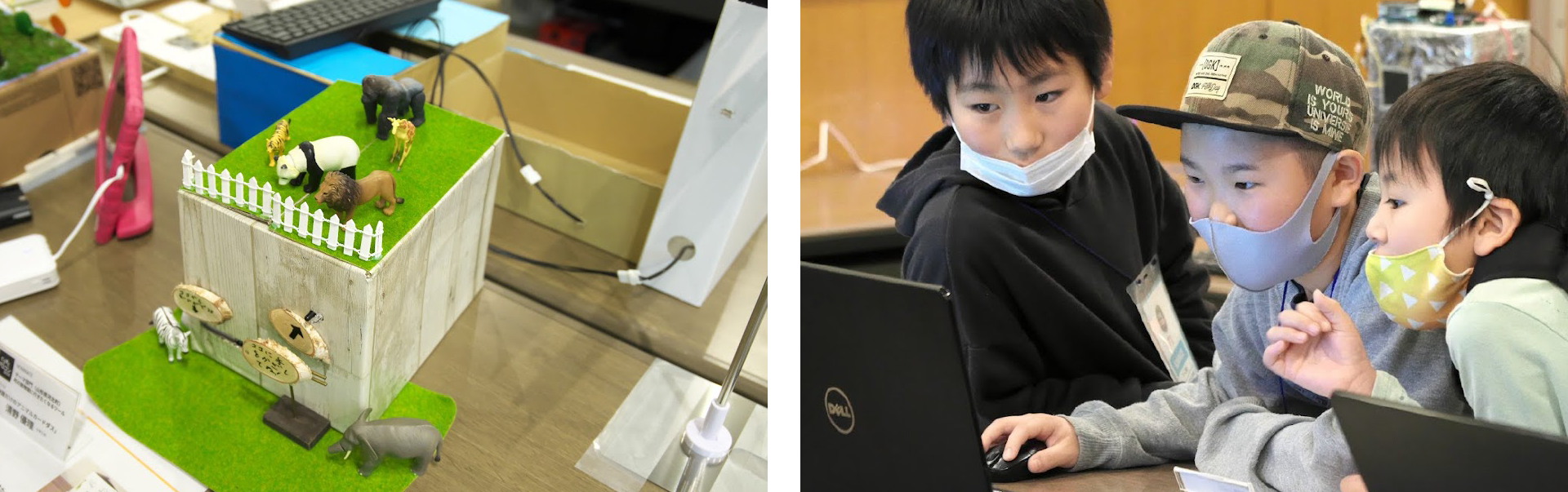 展示される作品で交流する子供達