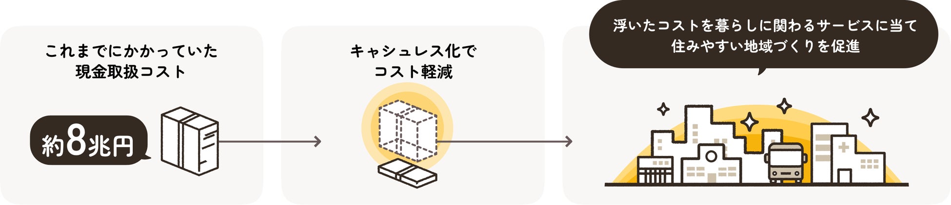 しかし、現在の国内キャッシュレス比率は3割と低い水準にとどまっているのが現状です。これまでかかっていた現金の取り扱いコストを削減し、それを地元企業の成長や行政サービスの向上・住み良い地域づくりに活かして地域の皆様に還元していく為に、私たちはキャッシュレス決済比率の向上が必要と考えております。