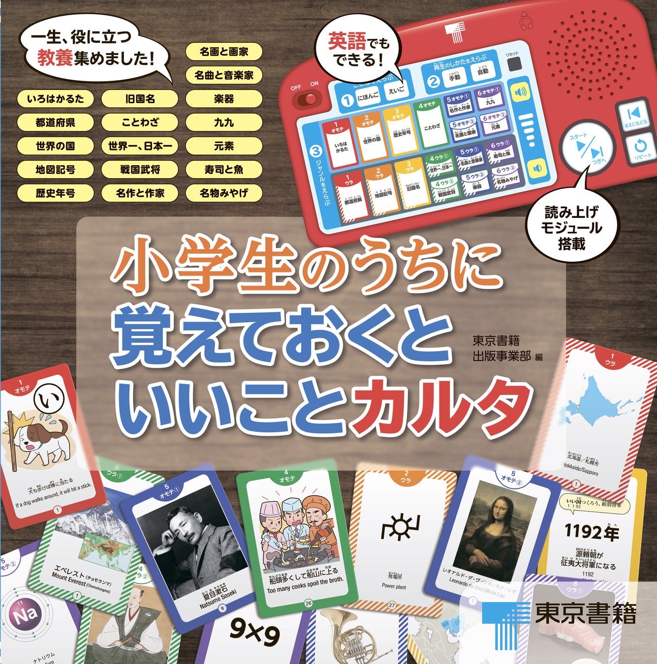 いずれは学校で必ず覚えなければならないことから、大人になってからも何かと役に立つ一般教養的雑学までを、楽しみながら習得できる読み上げモジュール付きカルタゲーム。