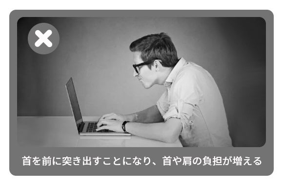 頭や首の痛み、肩こり、頭痛などの不快な症状がある方は、ストレートネックの可能性があります。これは、低すぎたり高すぎたりする高さの画面を長時間見続けることで、首や肩に大きな負担がかかることが原因です。