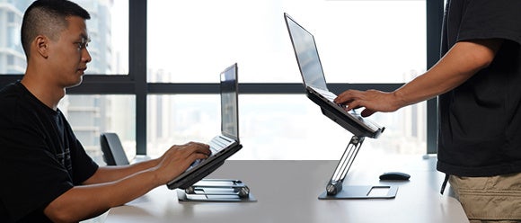 touneeは人間工学に基づいて設計されており、角度や高さは無段階調節可能!画面の高さや角度の調整は、長時間の作業において非常に重要です。特に、ノートPCを使用する際には、正しい姿勢を保つことが健康にとって重要です。
