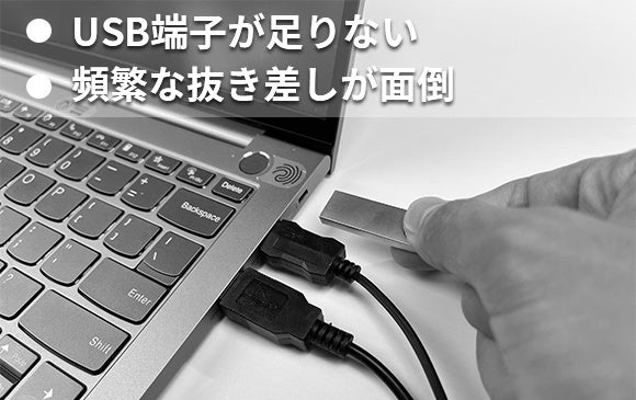 touneeはUSBハブ(USBポート×4)を搭載しており、1つのUSB端子を4つの端子に拡張できます。雑然としたデスク周りをきちんと整理し、USB端子の不足による煩わしさを解消できます。