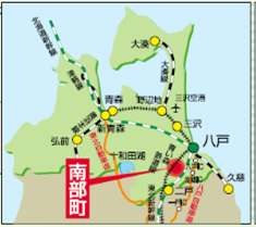 南部町は青森県の南東部に位置し、町の中央を流れる馬淵川の沿岸部