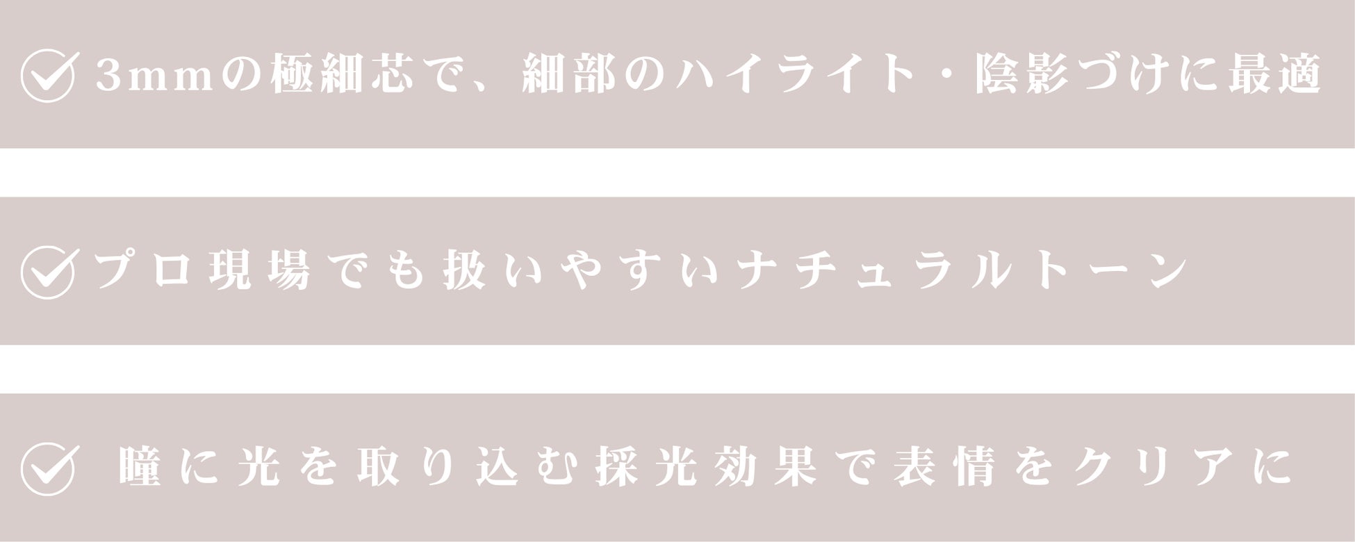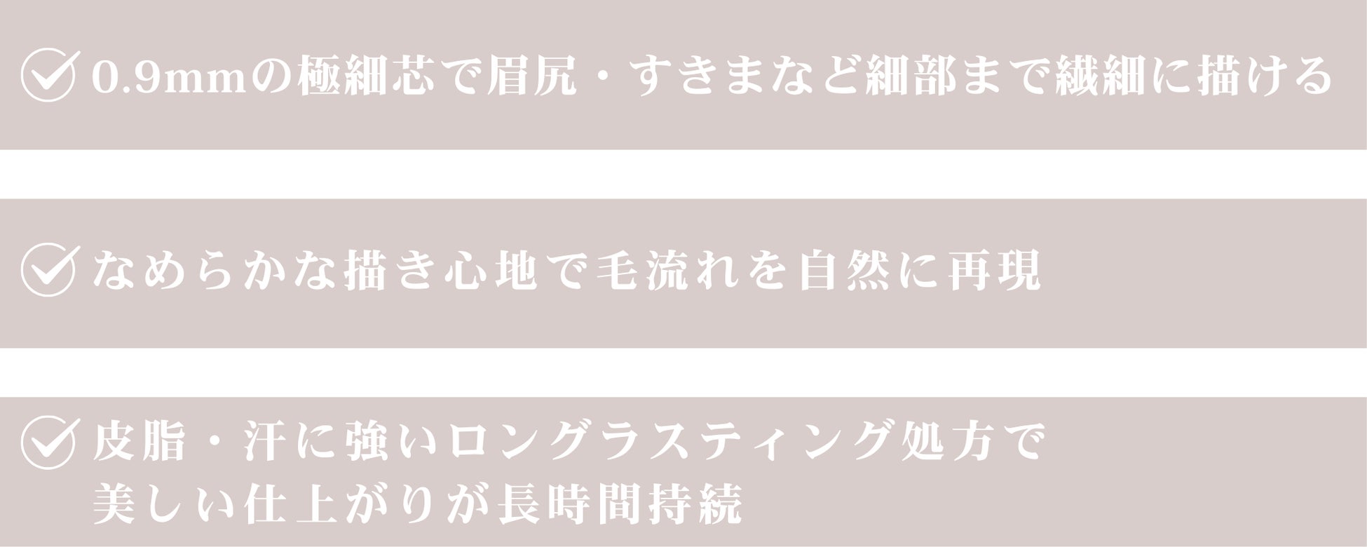 極細の筆先が眉の細部まで正確に捉え、繊細かつ自然な仕上がりを実現します。
