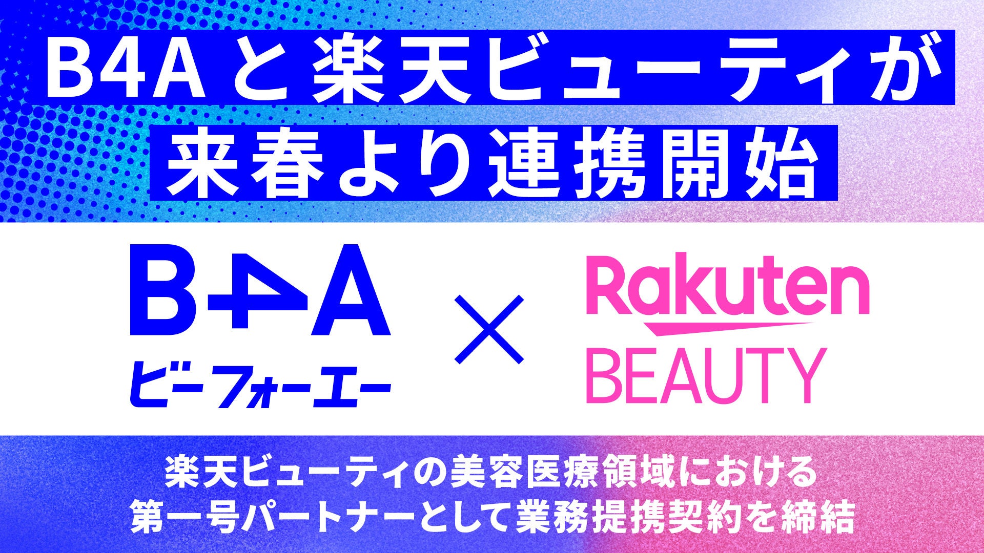 株式会社B4A(代表取締役CEO:植松 正太郎)が開発・販売する、自由診療クリニック特化型のDXツール『B4A(ビーフォーエー)』は、楽天グループ株式会社が運営するサロン予約サービス『楽天ビューティ』と業務提携契約を締結し、2026年春に向けた連携開始を目指します。