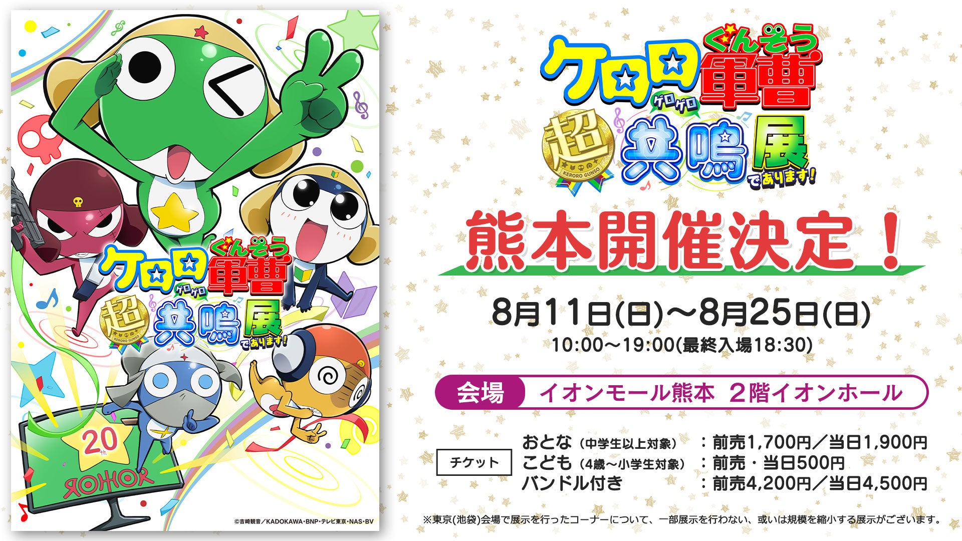 アニメ『ケロロ軍曹』放送20周年を記念して今年のゴールデンウィークに東京・池袋にて開催された「ケロロ軍曹 超共鳴(ゲロゲロ)展 であります!」が、このたび熊本での巡回開催が決定しました。