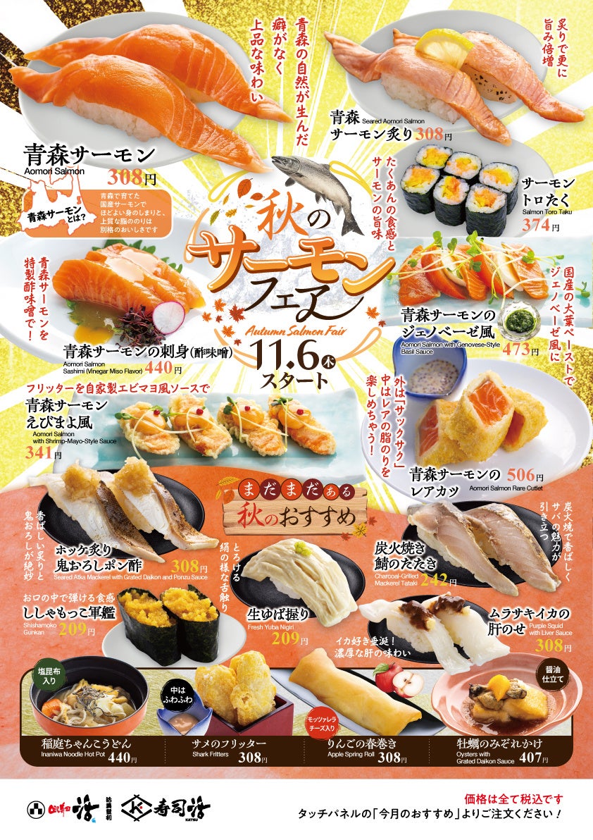 株式会社活美登利(本社:東京都品川区、代表取締役社長:土屋秀仁)が運営する「回し寿司活/寿司活」は、運営店舗で本日11月6日(木)より秋限定メニューの販売を開始いたします。