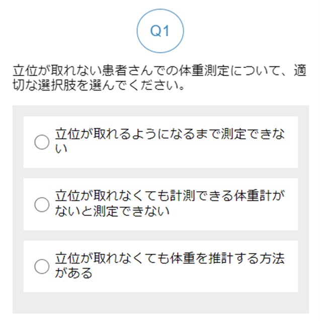 現在公開中のコース「チーム医療で活躍しよう」では、症例を提示し、チームでより良い栄養管理を検討する内容をドラマ仕立てで学ぶことができます。動画を視聴した後は、そのままサイトからテストに進み、学んだ知識の理解度を確認することができます。