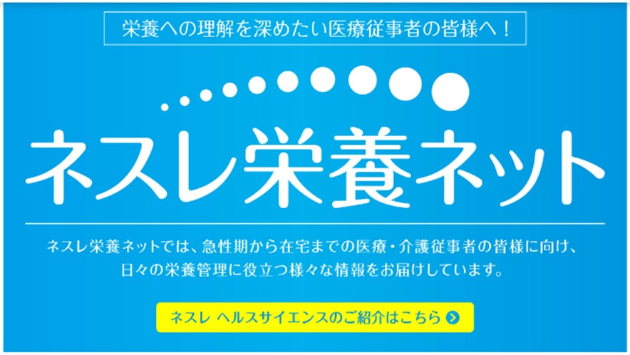 ネスレ ヘルスサイエンスは、「ネスレ栄養ネット」を通じて、医療従事者や介護福祉士などの介護従事者に、 栄養管理に役立つ様々な情報を提供し、従事者と患者のサポートとなるコンテンツを充実させていくことを目指しています。