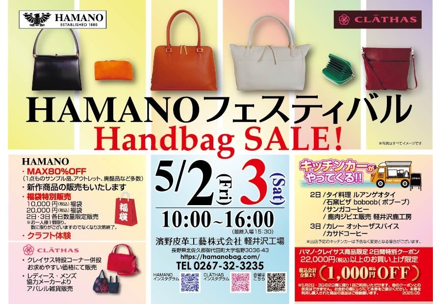 2025年5月2日(金)~5月3日(土)の2日間MAX80%OFFにて【HAMANOフェスティバル】を開催! キッチンカーも日替わりで! メンズコーナーもご用意! 皆様のご来店お待ちしています!
