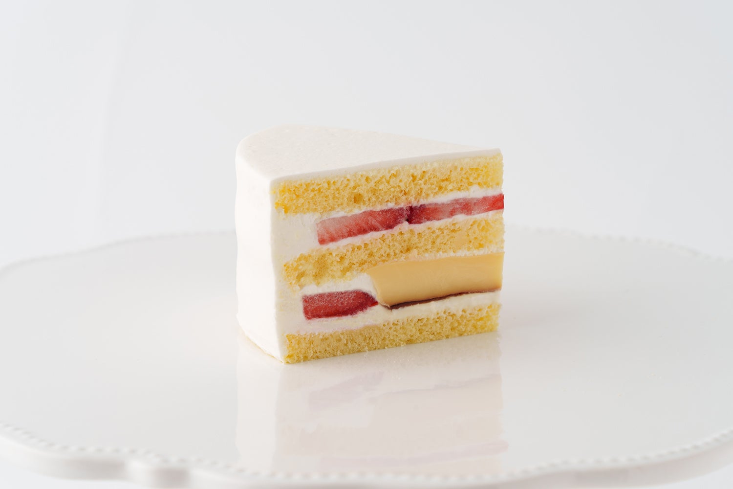 いちごのジュレとホワイトチョコムースをいちごムースで包み込んだケーキです。ジュレとムースには、甘みと酸味のバランスが絶妙な「愛きらり®」を使用、軽やかで滑らかなムースの食感が楽しめる特別な日を彩る贅沢な一品です。