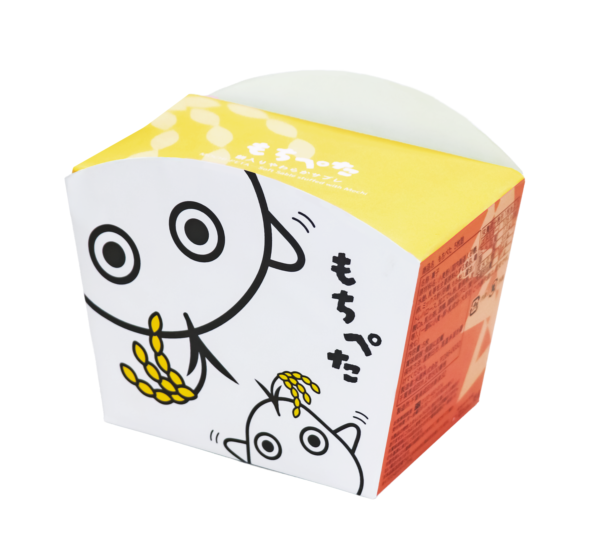 パッケージには、お餅から発想したほのぼのとしたキャラクター「もちぺた」をデザインしました。