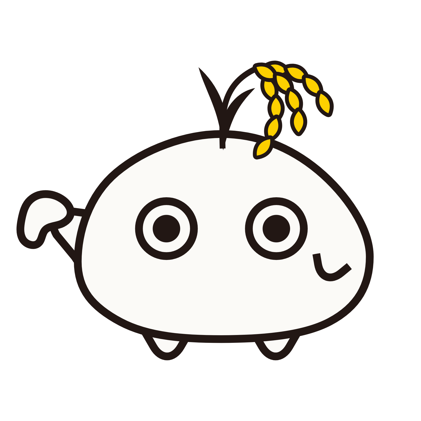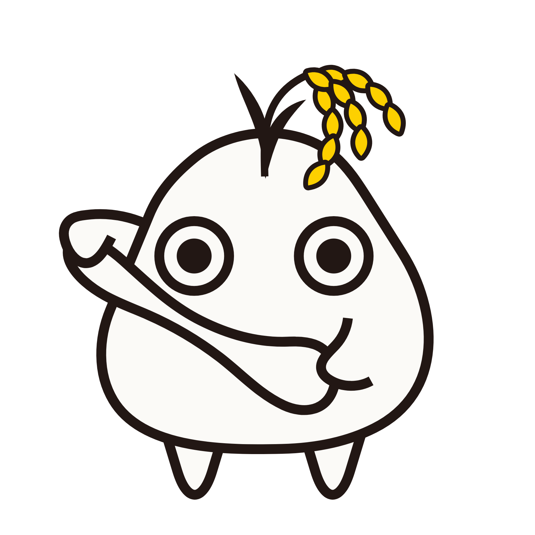 お餅の白をベースに、青空、太陽、稲穂、醤油をイメージした4色の差し色を使い、明るく楽しい世界観を表現しました。
