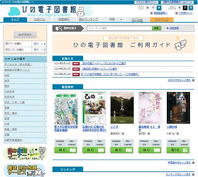 「ひの電子図書館」が7月2日(火曜日)10時にオープン