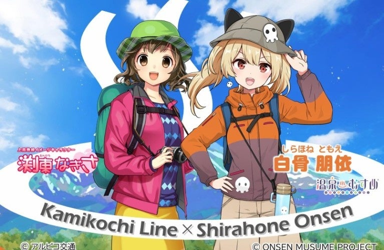 アルピコホールディングス株式会社の連結子会社である、アルピコ交通株式会社(本社:長野県松本市、代表取締役社長:小林史成)は、白骨温泉の「温泉むすめ・白骨朋依」と「上高地線イメージキャラクター・渕東なぎさ」とのコラボレーション企画として、ヘッドマークの掲出や記念乗車券等グッズを発売しますのでお知らせいたします。