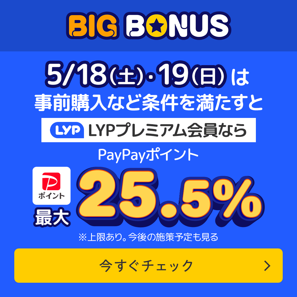 5/18・19(25:59まで)は \ヤフービッグボーナスおトク期間/