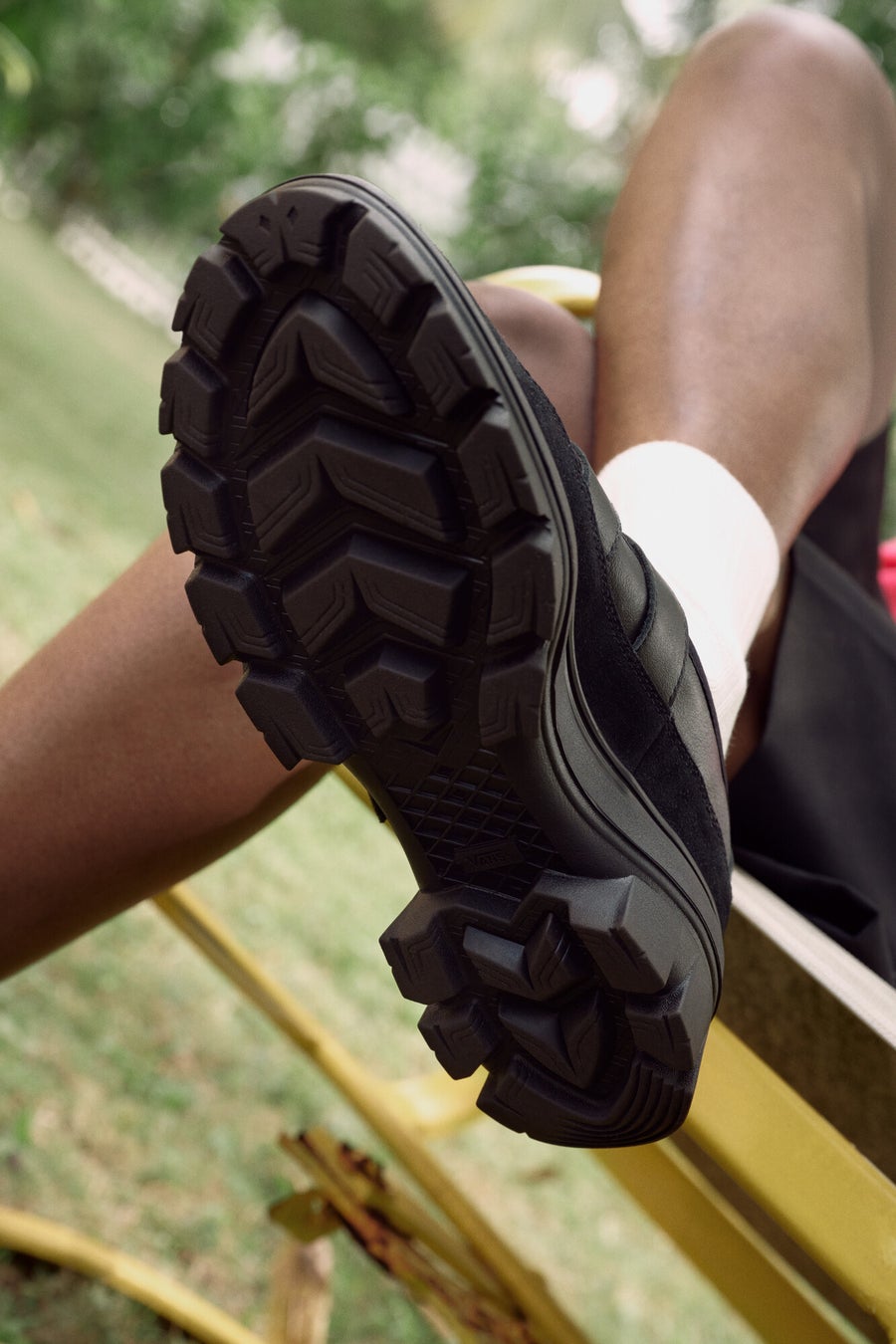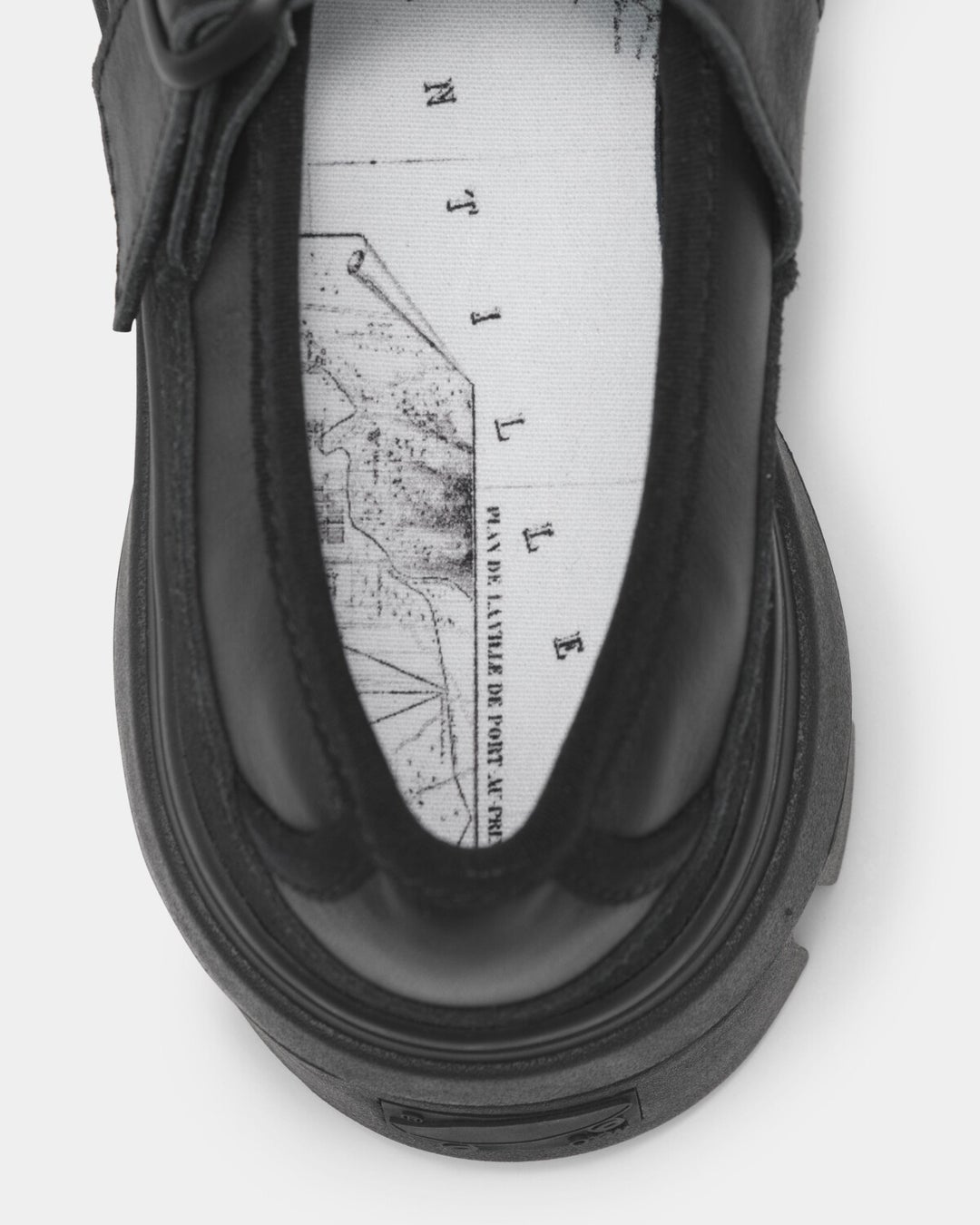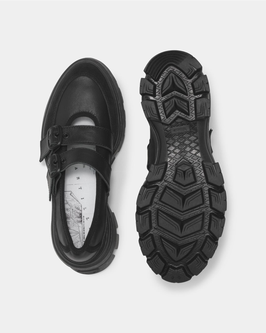 本作はベアトリスのレンズを通して、クラシックな「MARY JANE (メリージェーン)」のシルエットをアップデート。2本のストラップ、ボリューム感のあるアウトソールに、アッパーはプレミアムレザーとスエードを組み合わせたブラックワントーンで、ライニングにはヤギ革を採用しています。