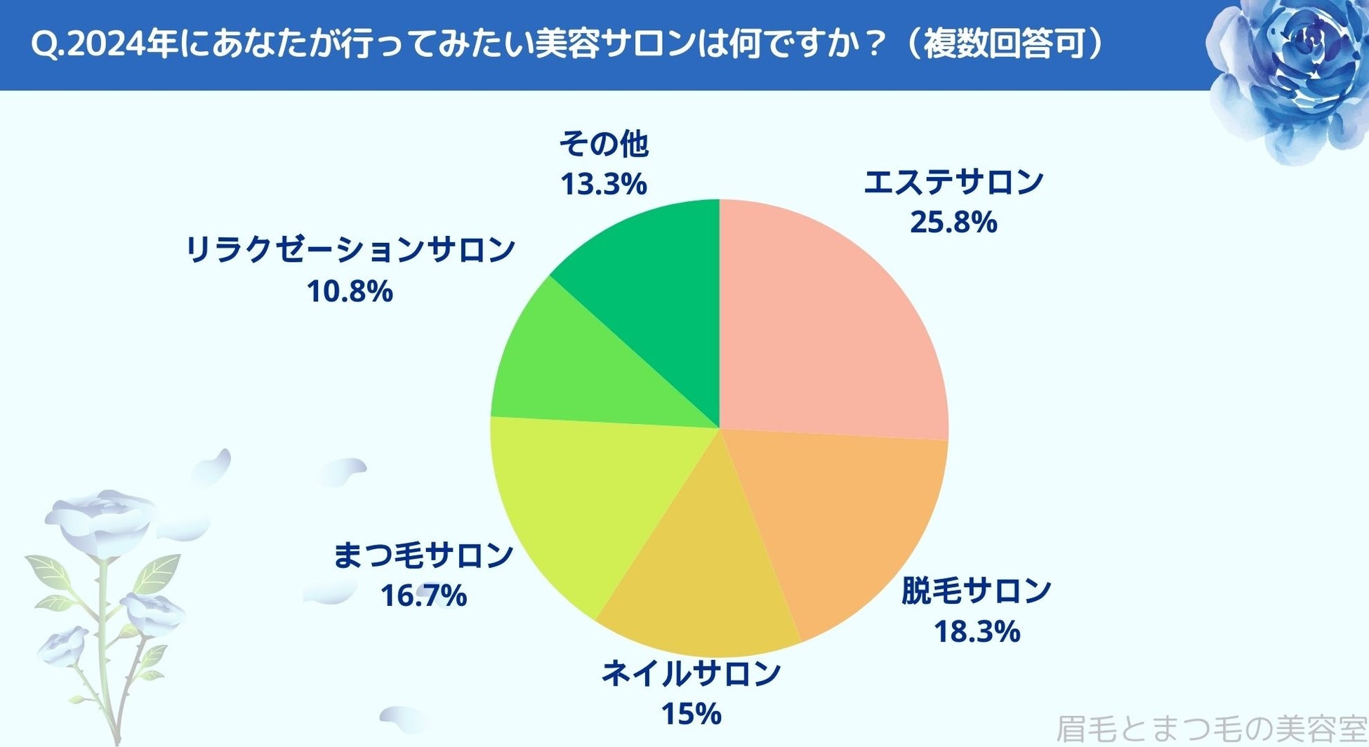 【1】2024年に行ってみたい美容サロンはエステがトップ!脱毛やネイルなども人気