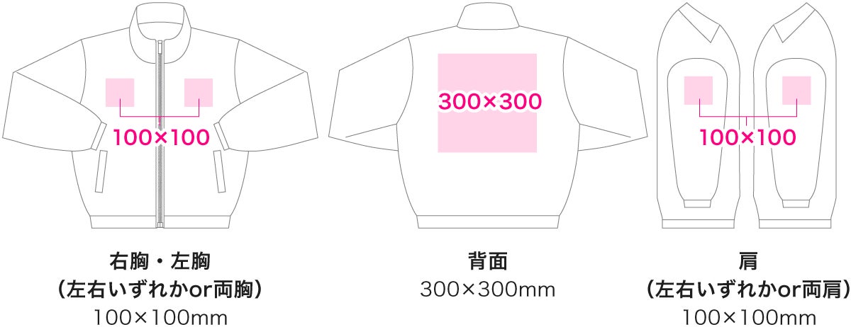 また、複数箇所に異なるデザインで印刷を行うことができ、右胸、左胸、背面、右肩、左肩の最大5箇所に印刷が可能です。