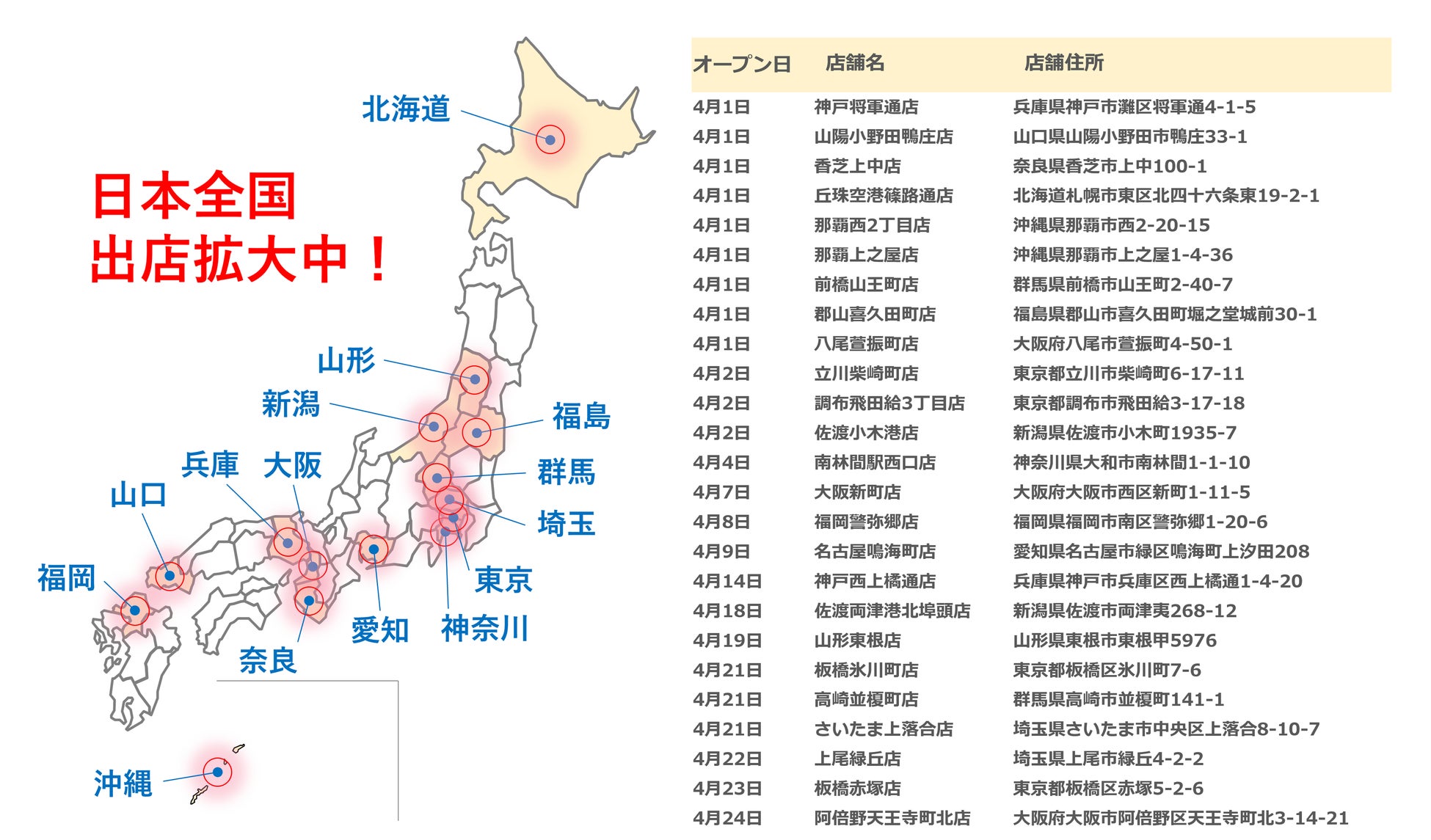 ニコニコレンタカー(運営:株式会社レンタス・店舗開発:株式会社MIC)は、2025年4月に25店舗をオープンし、全国の店舗数は1451店になりました。