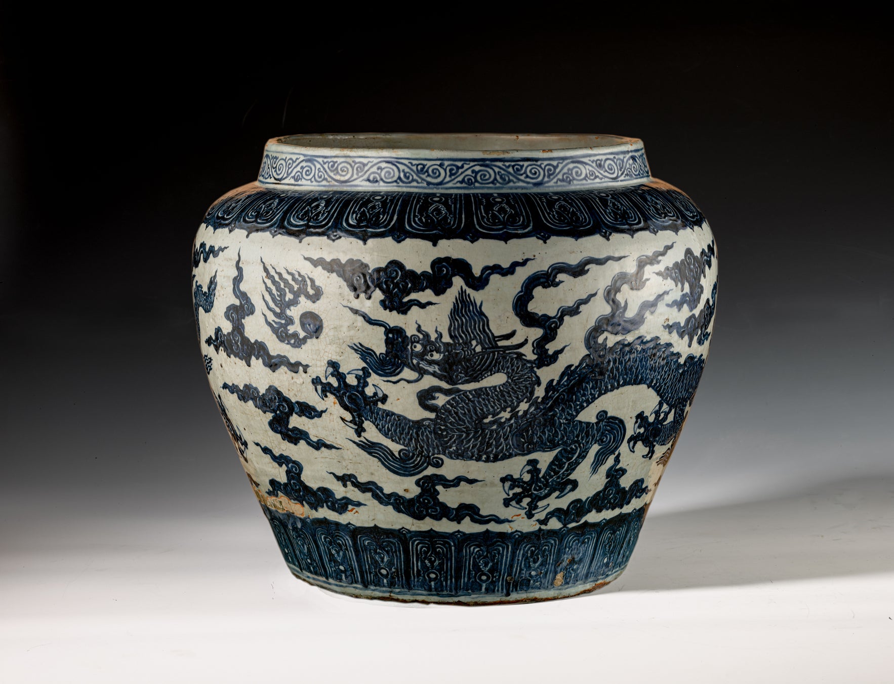 これまで“空白期”と呼ばれていた明時代中期のうち、本作は正統(1436-1449)年間の景徳鎮官窯を代表する現存最大の完形作例。
