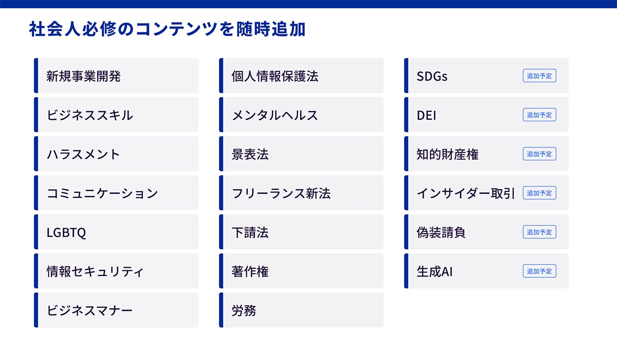 ハラスメント、情報セキュリティ、ビジネスマナーなど、社会人必修の研修コンテンツをマンガで提供。1シリーズあたり500円/名(半年間読み放題)で、最短即日利用可能です。