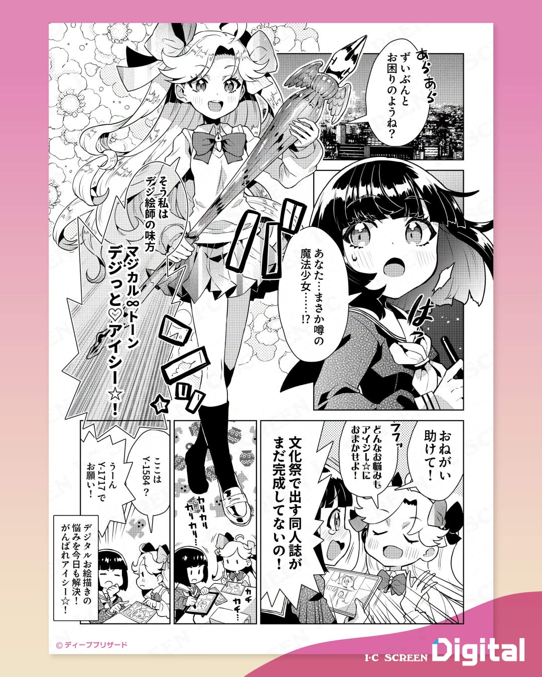 今回公開したメイキングは、登録者数39万人の人気お絵描きYouTuber・ディープブリザード氏による漫画原稿の制作過程です。初めてアイシースクリーンデジタルを使う方を対象にしたメイキング動画で、使い方を丁寧に解説しています。