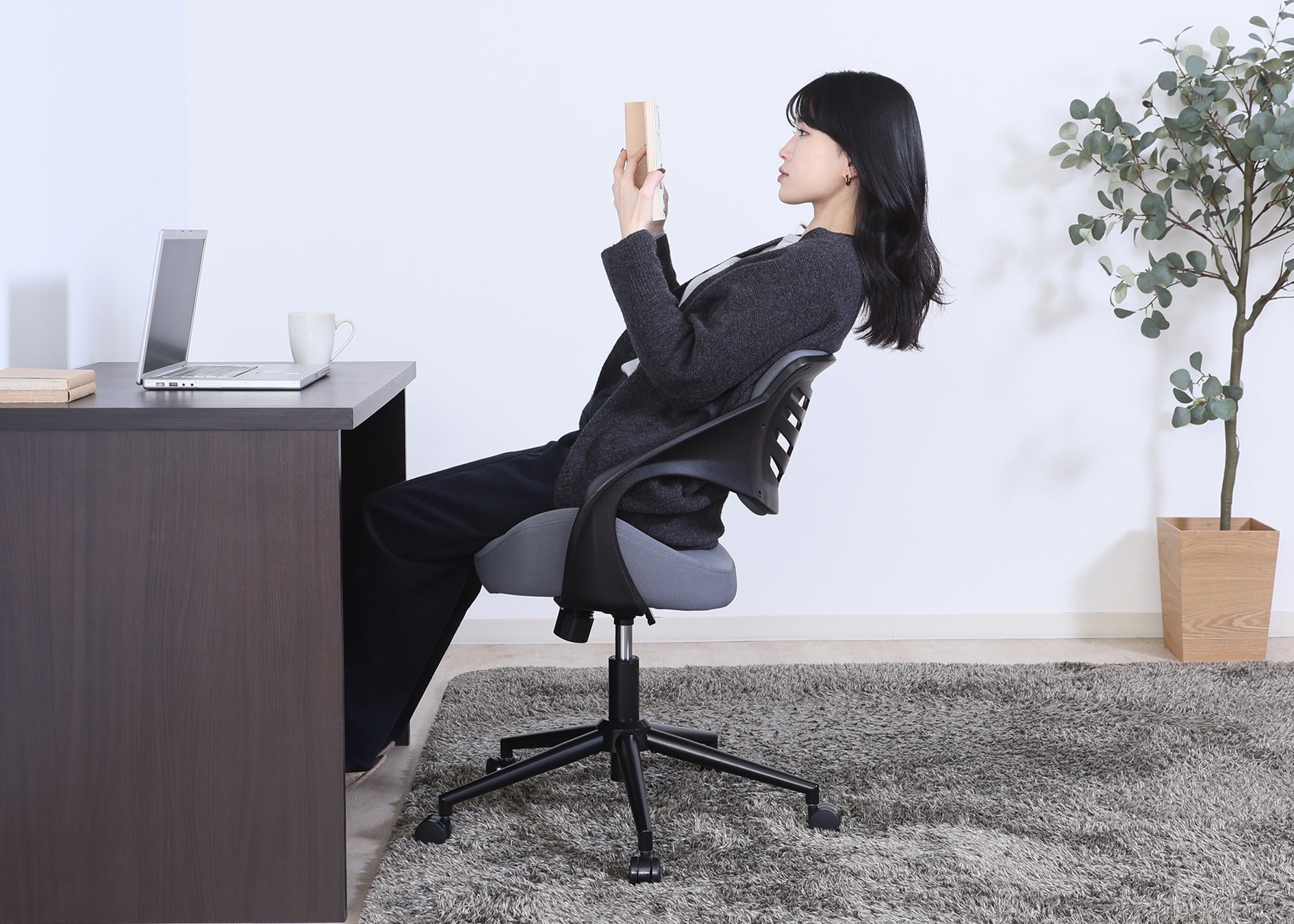 クッションには一般的なウレタンよりも耐久性が高い「モールドウレタン」を使用しています。背もたれと座面の両方に、ヘタリにくく肉厚なクッションを使うことで、快適な座り心地を実現しました。