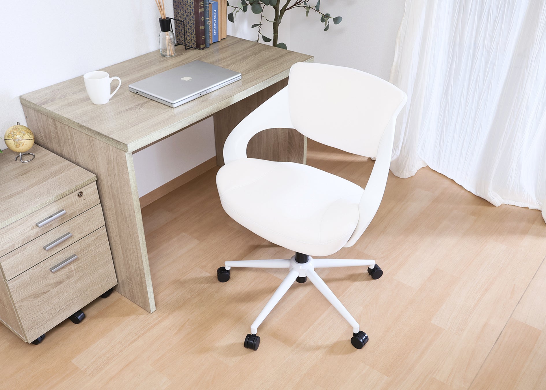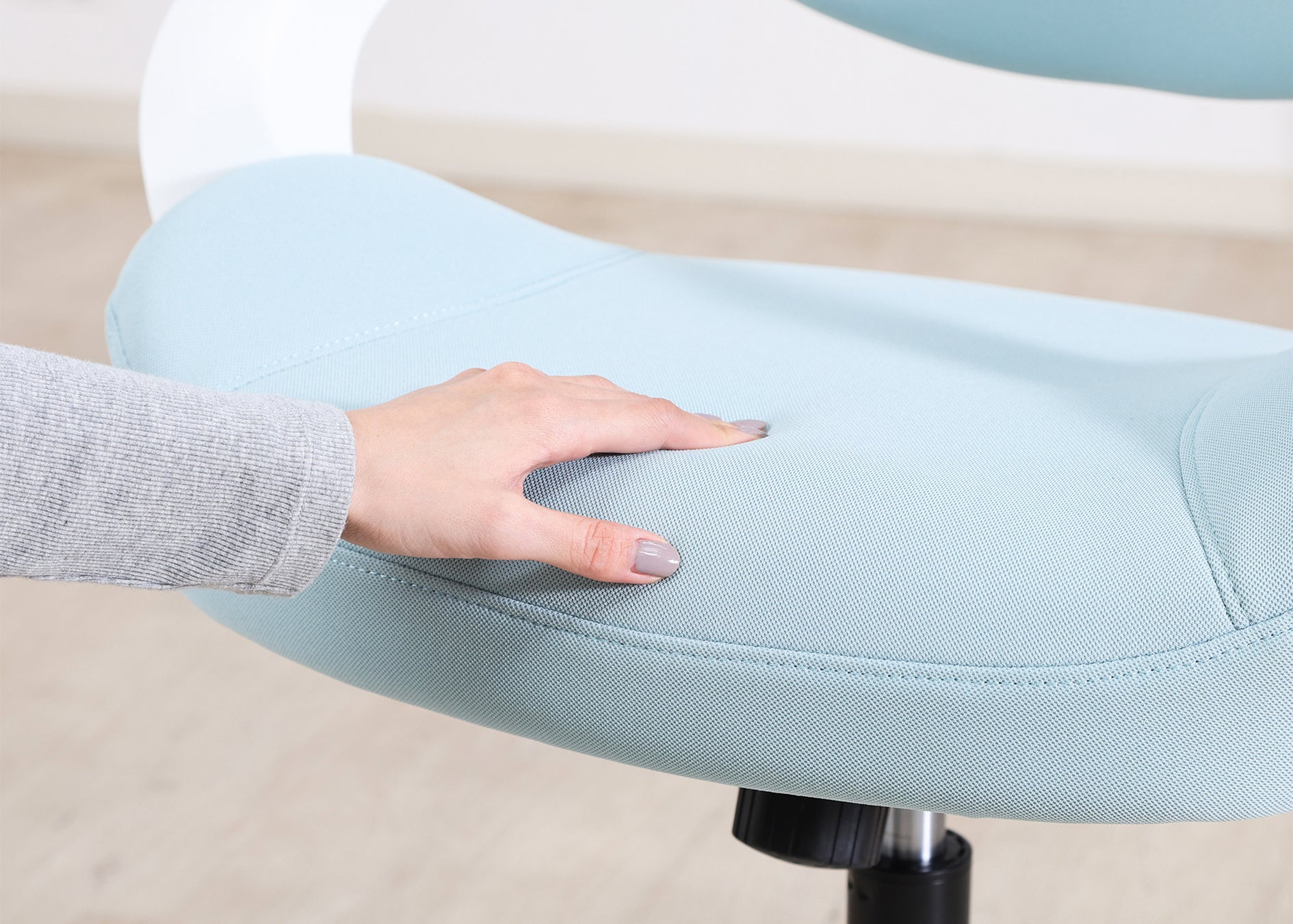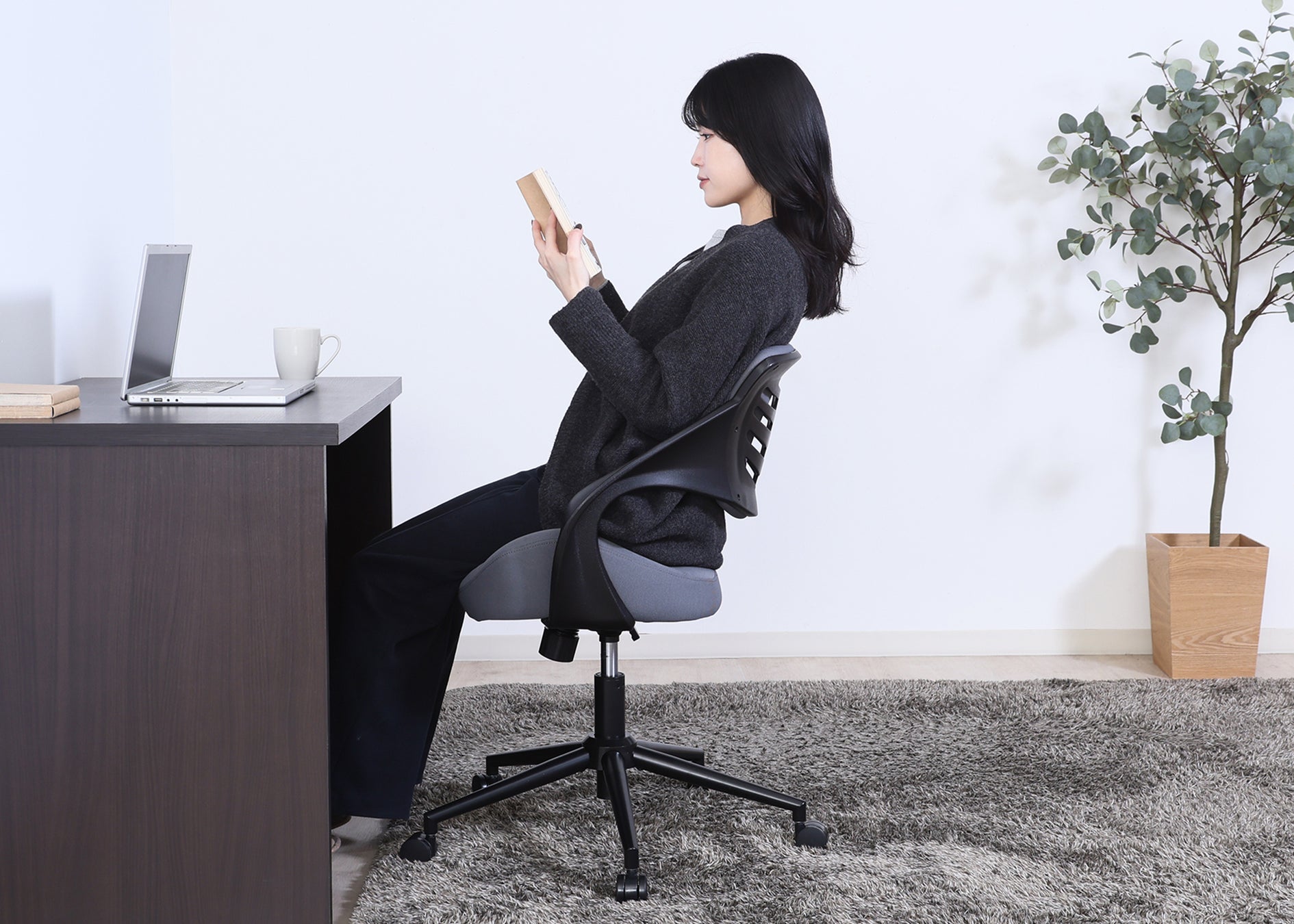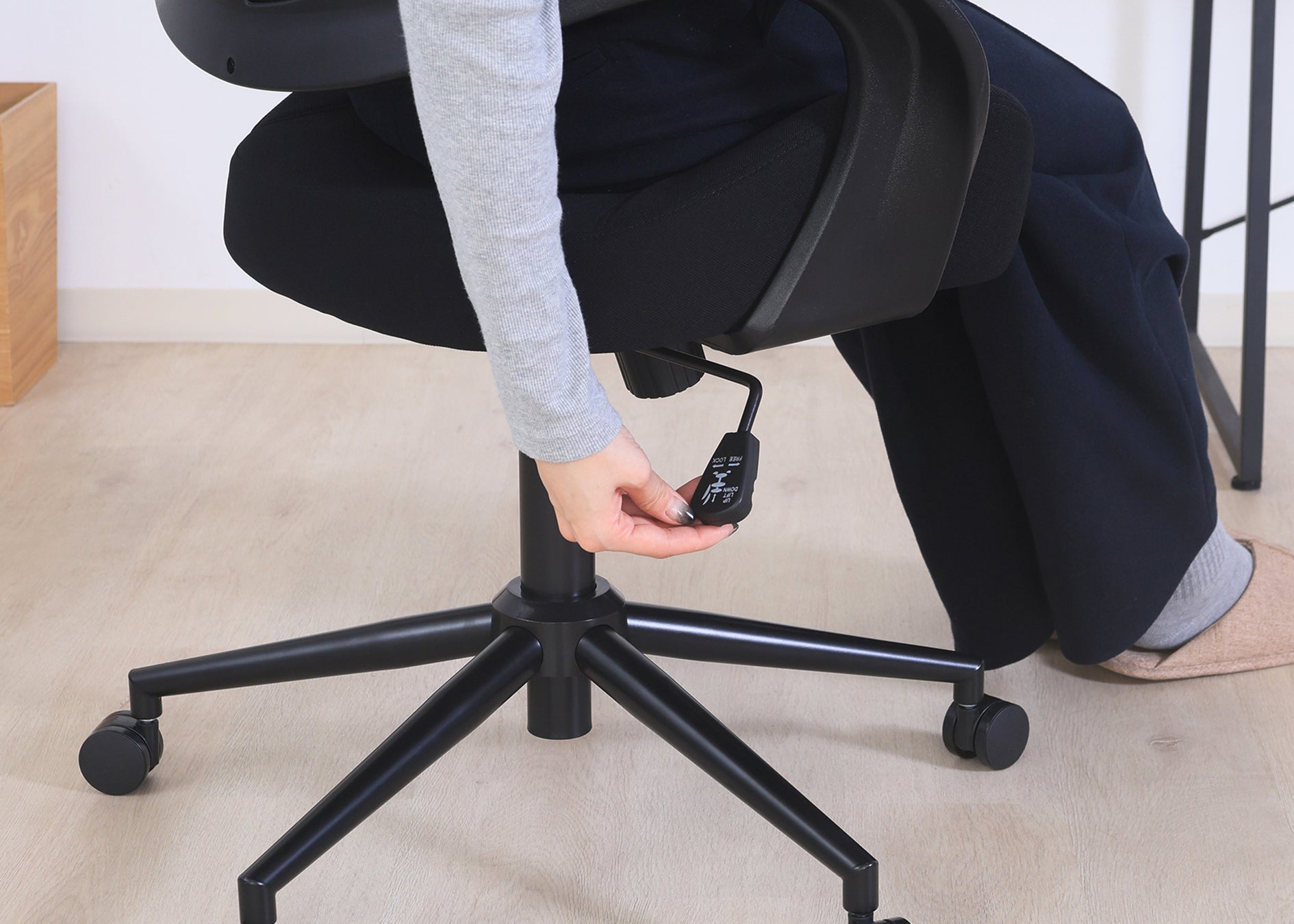 ガス圧昇降式なのでレバーを引くだけで簡単に高さ調整が可能です。座面高は45~55cmで調節でき、お子様や女性でも使いやすく、一般的なデスクに合う高さです。