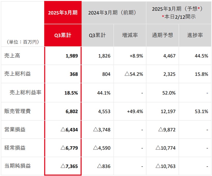 詳細は当社IRサイトより、本日発表の2025年3月期Q3決算短信〔日本基準〕(連結)資料をご参照下さい。また同サイトにて、Q3決算説明資料・決算説明会録画・決算説明会書き起こしも順次開示いたします。