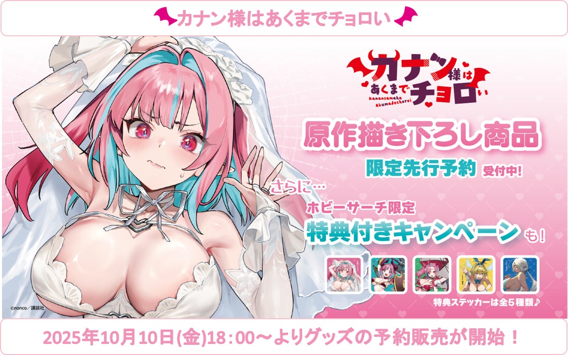 株式会社ホビーサーチ(東京都文京区)は、ステラノーツ株式会社から発売された『カナン様はあくまでチョロい』のキャラクターグッズを、2025年10月10日より弊社Webサイトにて先行受注を開始することをお知らせいたします。