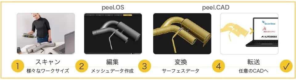 電気機械デバイスの大手メーカーである AMETEK Inc. の事業部である Creaform は、2002年の創業以来「Never Stop Innovating」を合言葉に、3Dスキャニング、リバースエンジニアリングアプリケーションに革新的なソリューションを提供する 3Dポータブル・自動測定技術の開発、製造、販売を続けてきた、カナダ・ケベック州に本社を置く測定機器メーカーです。その Creaform から2017年に分科した のが『peel 3d』です。
