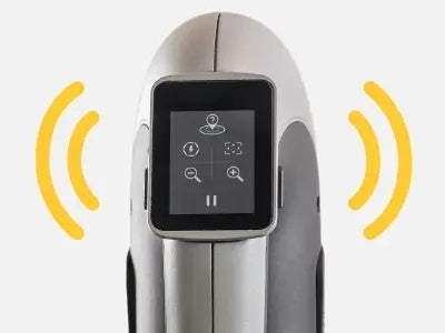 ハンドル上に配置された直感的な多機能LCDタッチスクリーンは、3Dスキャナの操作をよりスムーズにします。PCモニタを見なくても操作内容や対象物との距離をその場で確認することが可能です。