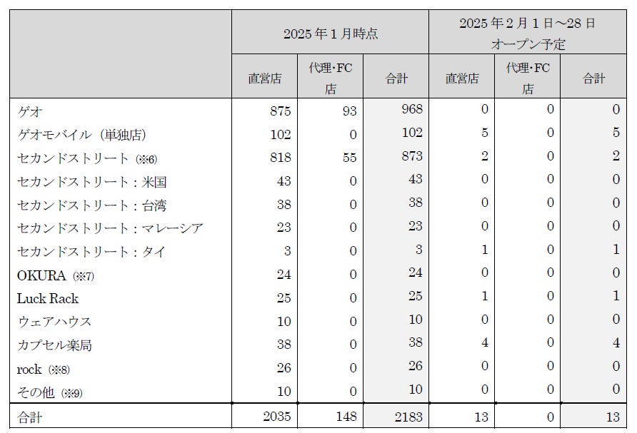 ※6)スーパーセカンドストリート、セカンドアウトドア、ジャンブルストア、Doki-Doki、Oki-Doki含む